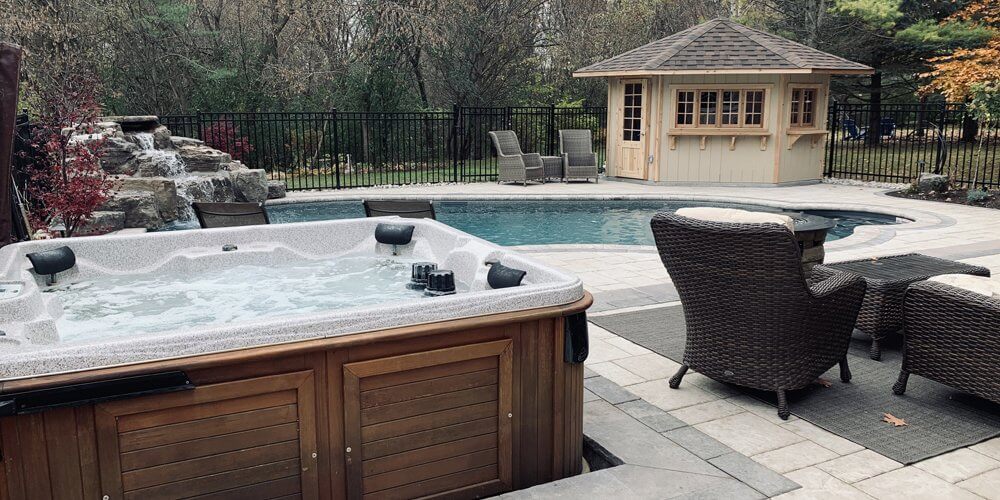 The hot tub was for cooler evenings and the wrought iron fence to provide an infinity look to maintain an open living space.